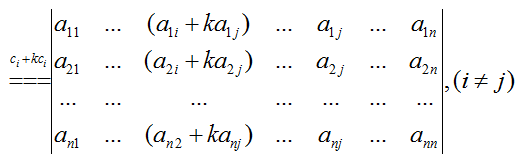 性质 6 把行列式的某一列(行)的各元素乘以同一数然后加到另一列(行)对应的元素上去,行列式不变。例如以数乘第列加第列上(记作),有