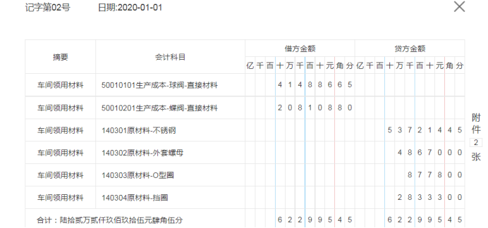1月1日,车间一领用不锈钢7931.4588kg,领用外套螺母15992个,领用O型圈11994个,领用挡圈19990个。车间二领用不锈钢4006.64kg,领用外套螺母8343个,领用O型圈5562个,领用挡圈8343个