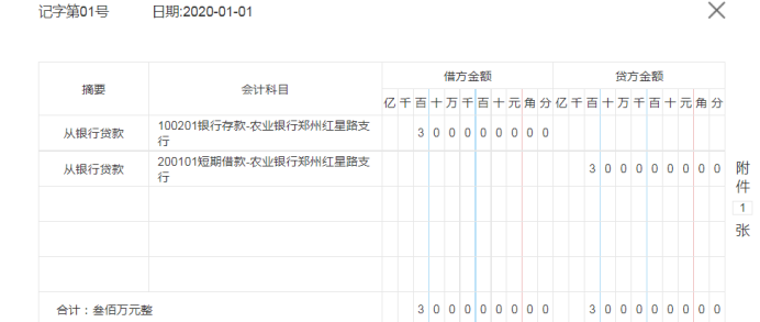 1月1日,从银行贷款3 000 000.00,为期6个月,年利率4.35%。