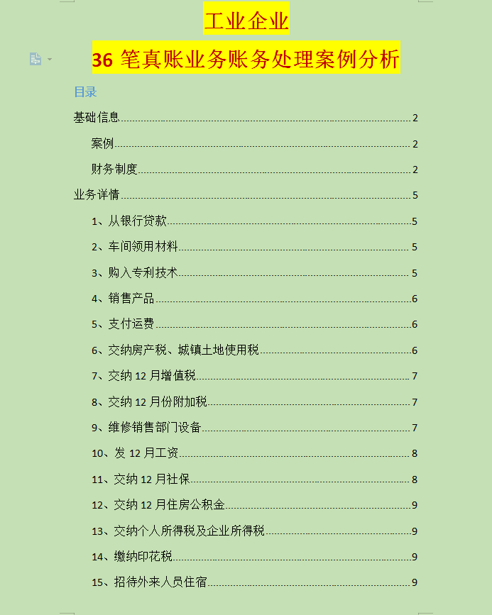 今天给大家整理了我们工业企业的真账实操,包含36笔真账业务账务处理案例分析,一共56页,很全面详细,内部的珍藏版。大家一起来看看吧!