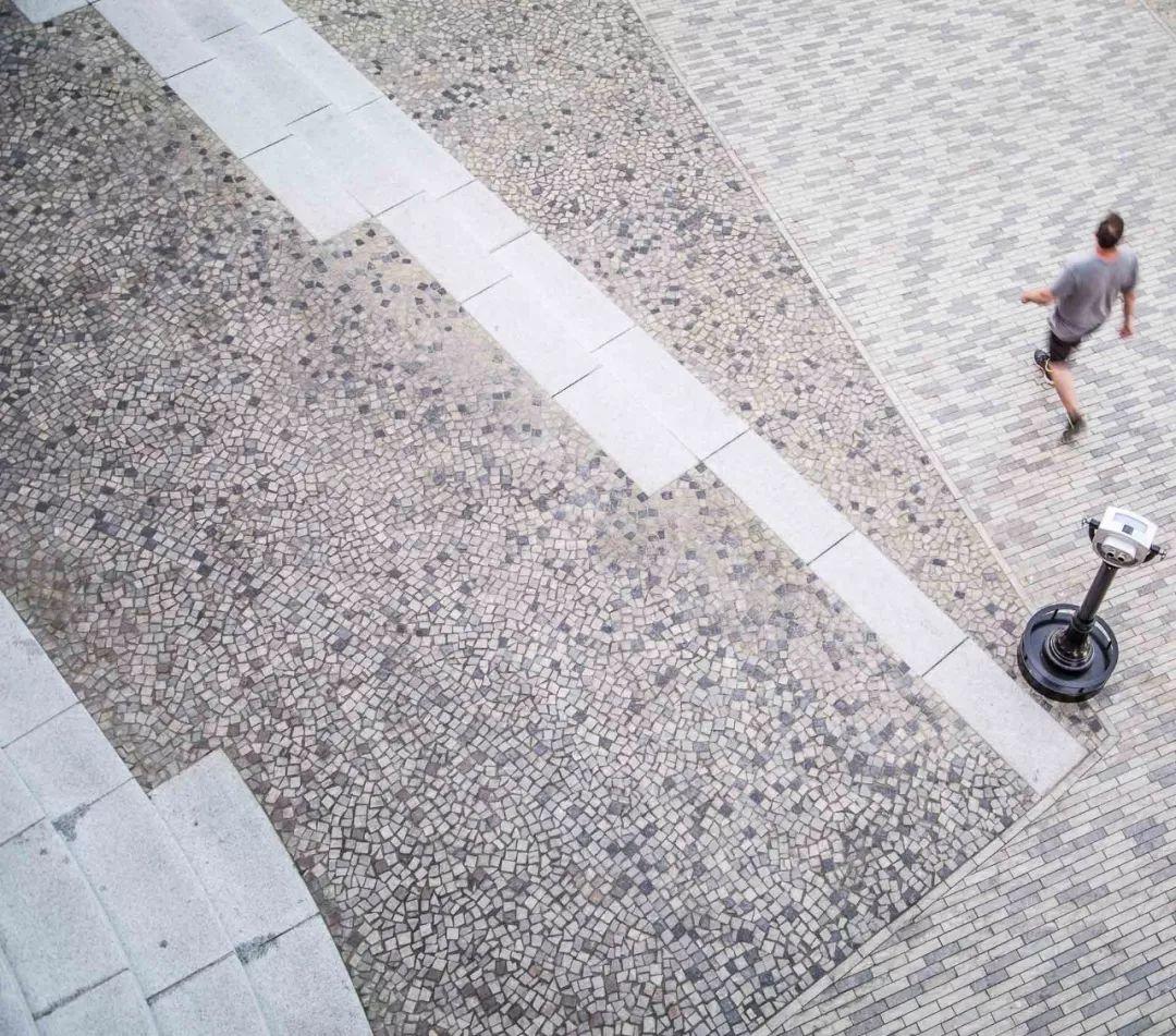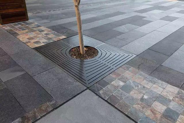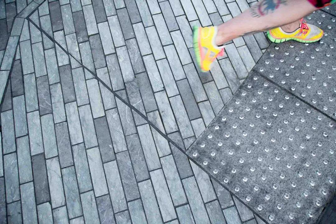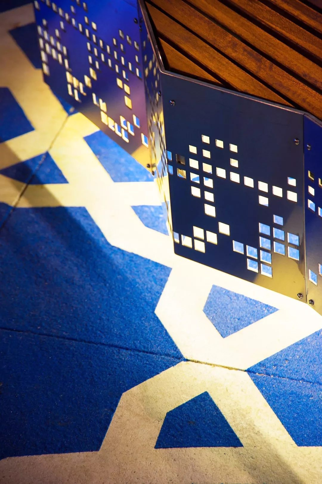 活跃的绿松石蓝与青金石蓝是最能引起整个社区共鸣的颜色。通过高辨识度的颜色作为视觉线索,加上蓝色玻璃骨料和树脂模板的铺设,为街道增添生命力,成为片区的亮点。
