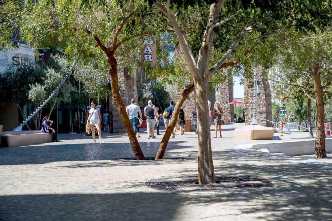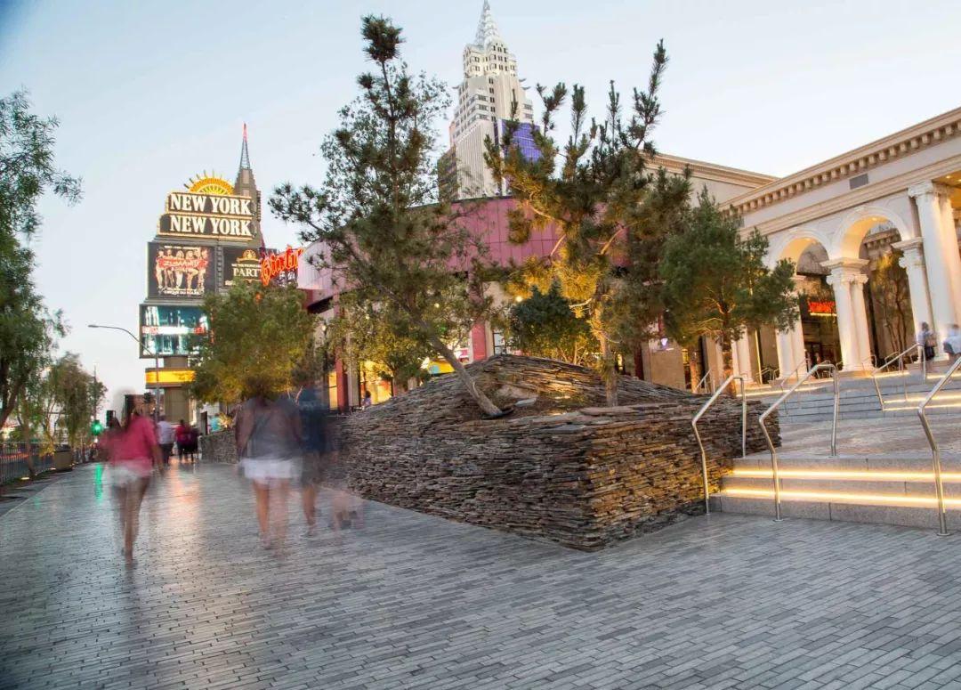 这个大型基础设施项目的第一阶段包括翻新两个酒店外观,周围的公共空间,以及“The Strip”的第一个公园,将于2016年开业。这是一个更大的计划的第一阶段将拉斯维加斯大道的体验与行人友好的开放空间融为一体,提供来自太阳的休息。此外,酒店还开放了其门面,并利用精品租户和人行道咖啡馆创建了店面零售空间,最终保证了公众的曝光和行人交通。