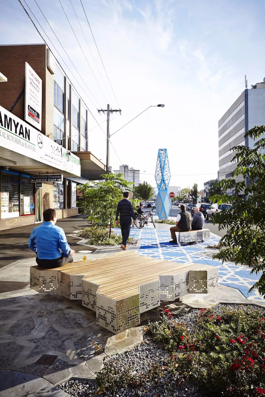 阿富汗市集展现了设计公共文化空间的新方向——不囿于传统的片区形象塑造。通过社区调研,设计团队得以更好地理解人们使用现有空间的方式,以及更好地融合特定文化需求的方式。例如,定制的休憩座位区的排布方式重新诠释了阿拉伯传统文化中清真寺中的“suffah”区域,也称为高台。在现代澳大利亚城市语境中,这里是人们可以用他们熟悉的方式进行社交的场所。