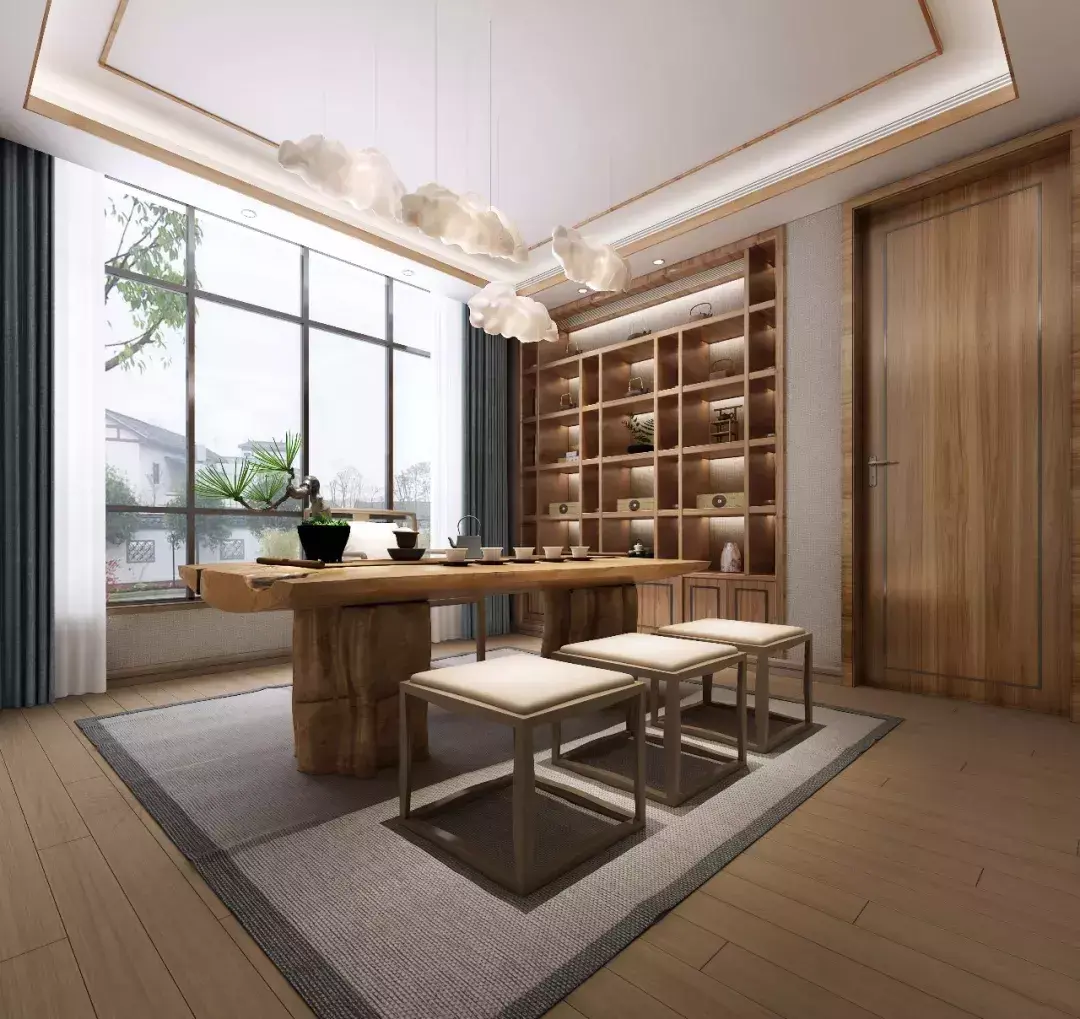 茶室一般采用局部照明和间接照明的方式,通过灯光的明暗搭配,在朦胧婉约中烘托出茶室的幽静。而且,茶室作为一个品茗会友的场所,照明强度不宜过高,最好以暖光为主。