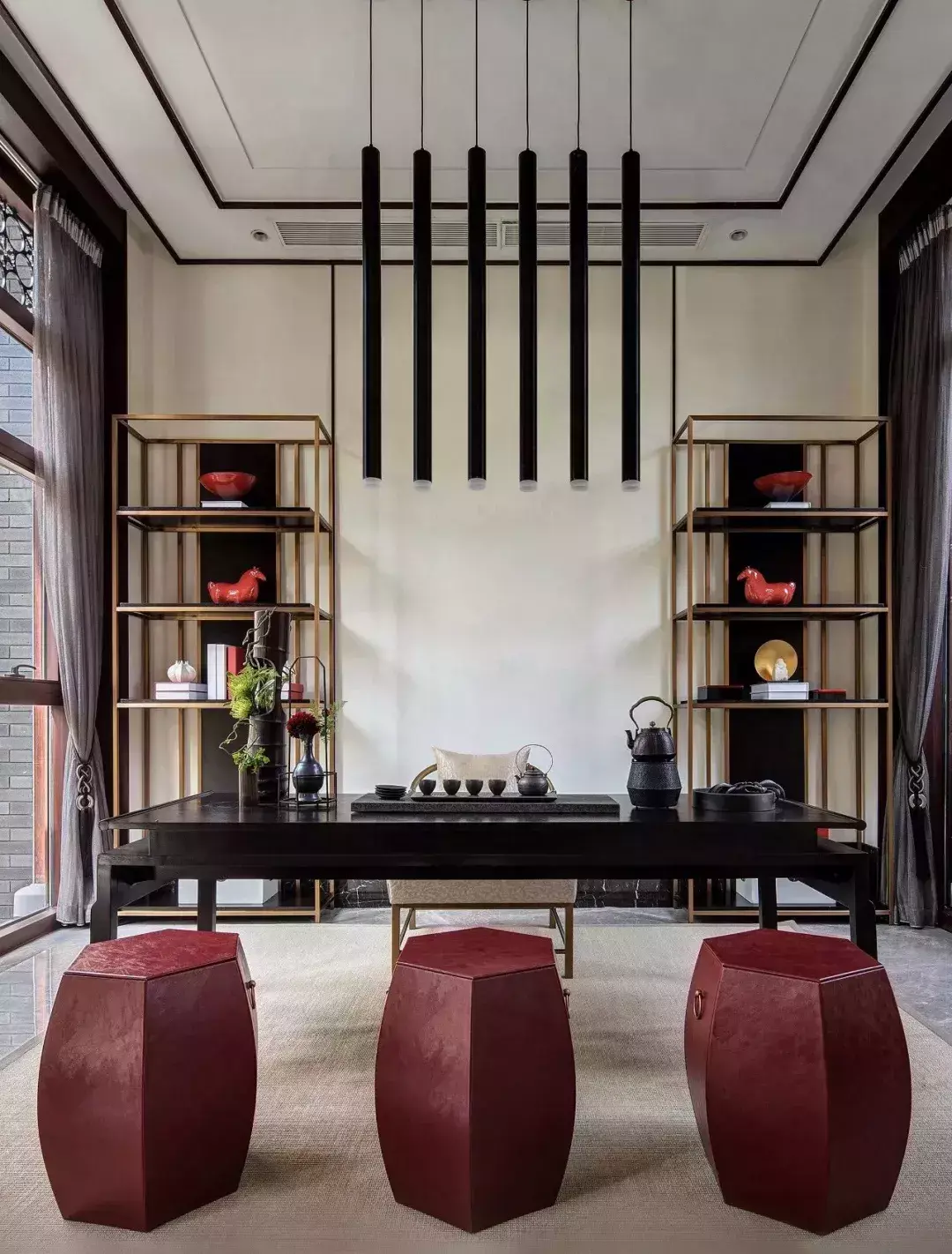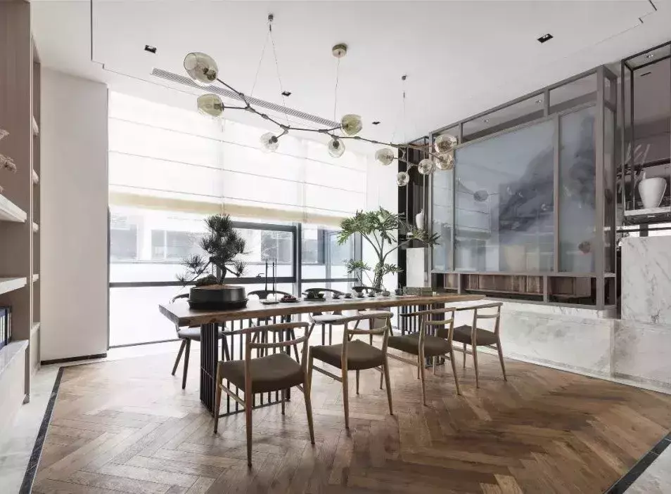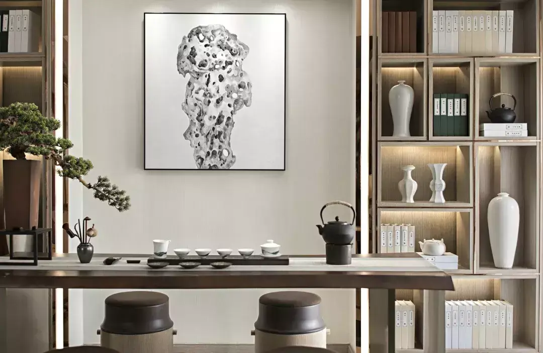 以简素自然的设计哲学,忘却红尘俗事,体会茶道本真。这种精练的视觉美感,正是茶意空间的体现。