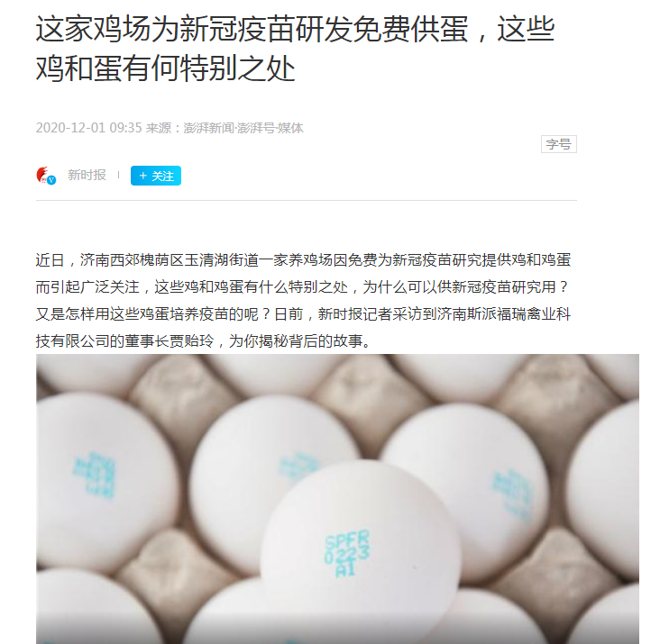 近日,一篇题为“这家鸡场为新冠疫苗研发免费供蛋,这些鸡和蛋有何特别之处”的文章被广泛传播。