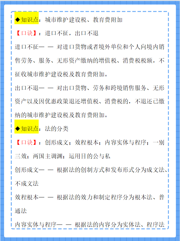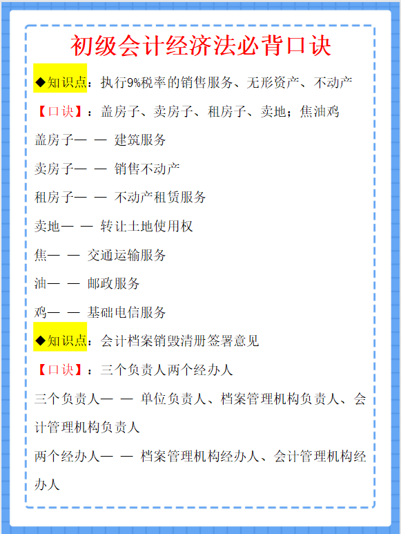 初级会计经济法必背口诀,按照口诀记忆,根据短短一句话展开就是一整个知识点,这也太赞了吧,零碎的知识全部都串联了起来,通俗易懂,简直就是太好用了!