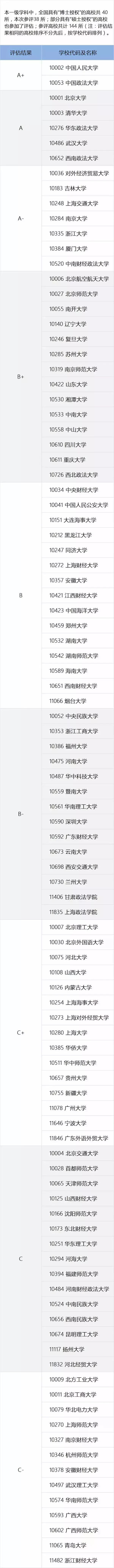 首先我们可以参考教育部学位与研究生教育发展中心公布的学科排名。这相当于是该学校法学学科的实力评估啦!