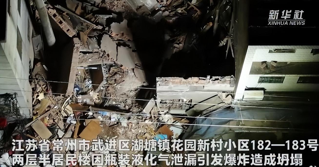 11.江苏常州一居民楼瓶装液化气发生爆炸致1死5伤:24日,江苏省常州市武进区湖塘镇花园新村小区182—183号两层半居民楼,因瓶装液化气泄漏引发爆炸造成坍塌,致1人遇难、2人重伤、3人轻伤。事故具体原因正在调查中。(新华社)