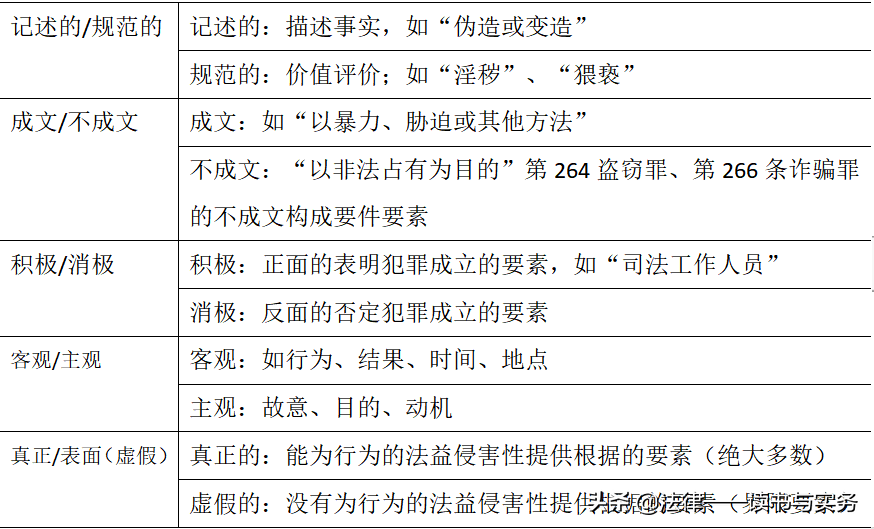 2、大前提的种类(分则罪状由一个个构成要件要素组成)