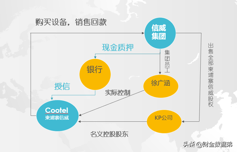 为了让零和的关联交易转化为账面销售收入,信威集团必须将用于虚构收入的实体——柬埔寨信威在股权关系上脱钩:2011年信威集团就已经将柬埔寨信威(Cooltel)全部股权通过旗下子公司重庆信威公司售予了KP公司(占80%股权)及其他三个柬埔寨人,而这个时候距离信威集团借壳原股票简称为“中创信测”尚有2年多的时间,可谓“挖坑”提前布局之早,套路之深。