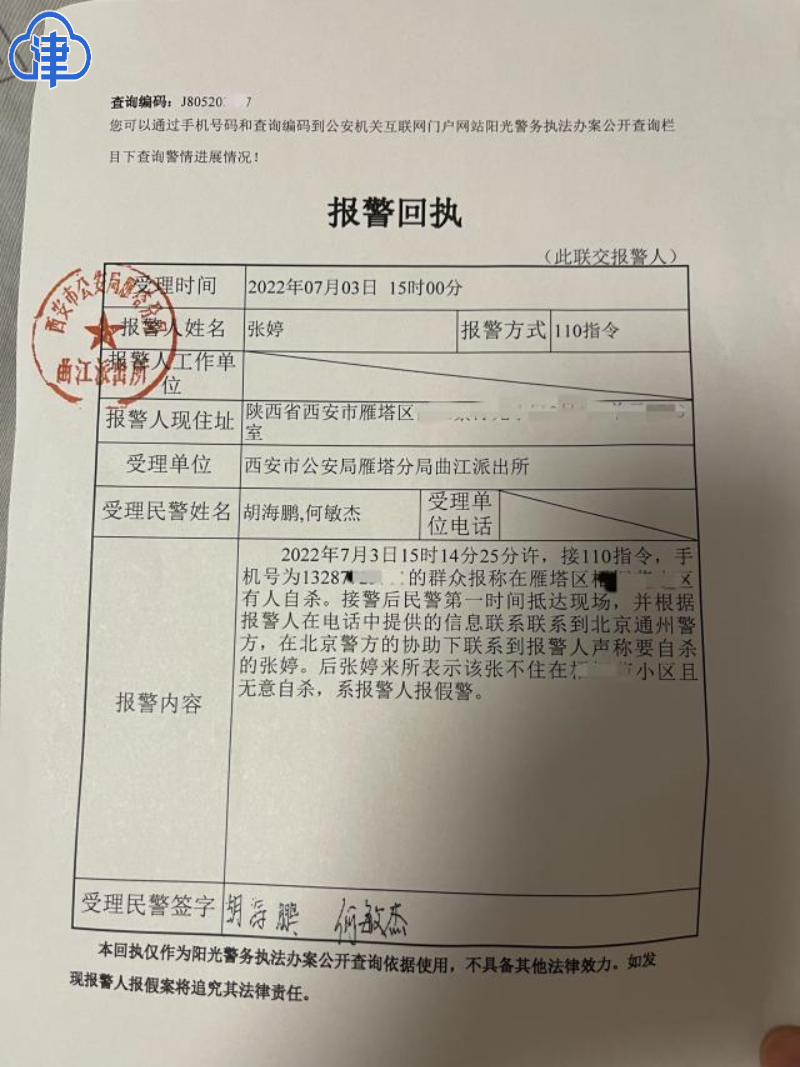 2022年7月,“某农场”报警称张婷要自杀,民警辗转几个小区联系到张婷后才知道是一场闹剧,张婷又对“某农场””报假警”一事进行报警,此前正在办理中。