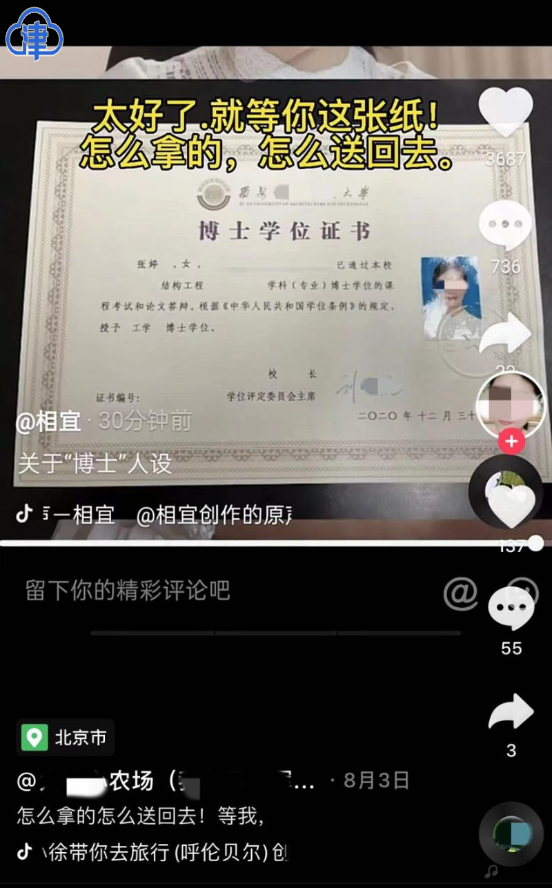 张婷没想到,被关注度越来越高的同时,开始有一些自媒体帐号质疑、攻击她学历造假,“相宜博士学历”的话题很快就上了抖音热榜。