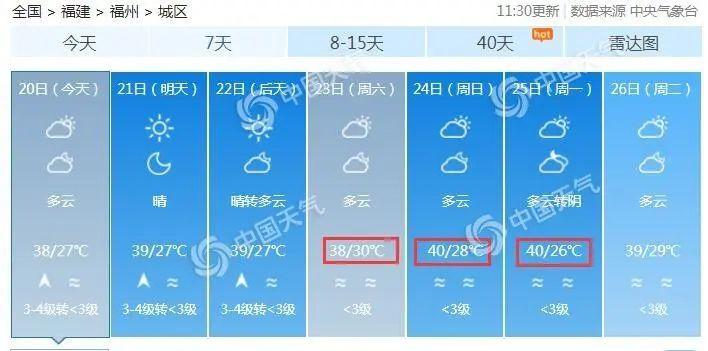 省会级城市中,长沙、南昌、福州等地今起至7月底,高温都将“天天见”,其中不乏38、39℃的热度,再加上湿度较大,出门就可“蒸桑拿”。上述地区不仅白天“蒸”,晚上还要继续“煮”,尤其是南昌夜温普遍接近30℃,“桑拿房”24小时供应。福州24日最低温也将有30℃,或打破当地最低气温最高值纪录。