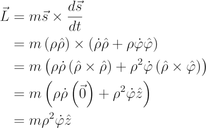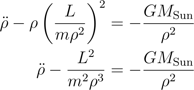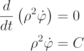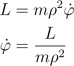 角动量等于质量乘以ρ^2φ '(在z方向上)。因此,C=L/m。此外,角方程还可以帮助我们解径向方程
