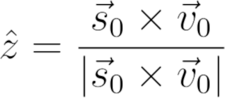 如果我们取物体的位置矢量和速度矢量的向量积,然后把结果乘以质量,就得到了角动量,它有类似于动量的性质,但是是围绕着一个点旋转而不是平移。我们稍后会看到,开普勒第二定律是角动量守恒的结果。现在,我们要用它来定义z基向量。