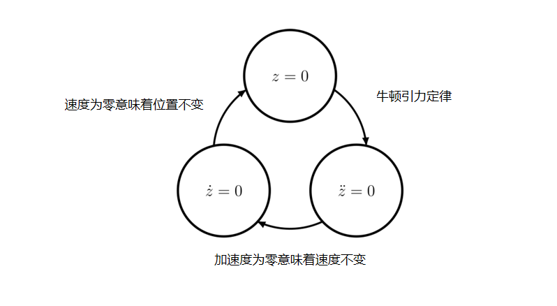 我们要让其中一个坐标为零。假设z = 0。根据上面的方程,物体在z方向上不会受到任何力,因此也不会有加速度。如果z方向的速度也是0,那么z将保持为0。