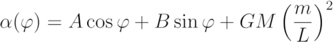 前面提到过,在得到解之前,x轴和y轴并不参与计算,我选择它们使sin项消失而cos项保留。这样,我得到了α(φ)的一个更简单的方程