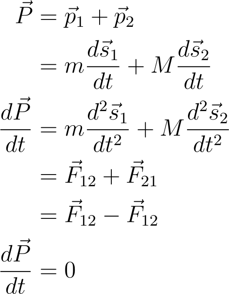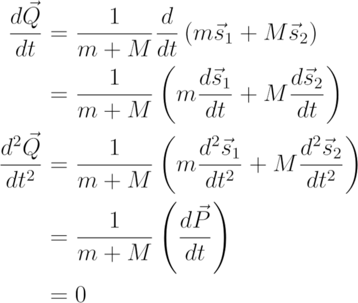 太阳静止的假设导致动量守恒的一些问题。绕轨道运行的物体会改变它的速度,而“太阳是静止的”,这就意味着动量不守恒。为了保证动量守恒,我们需要太阳移动。如果我们从距离矢量q = s_1- s_2开始,求它的二阶时间导数,有
