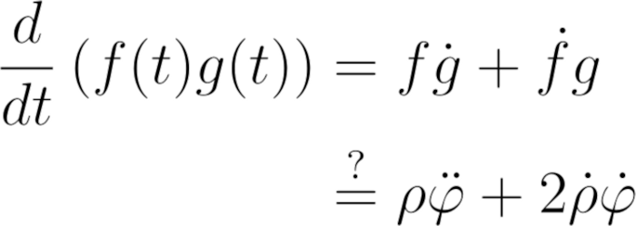因为是柱坐标,因此ρ和φ基向量不是常量,这意味着我们也要对它们求时间导数。