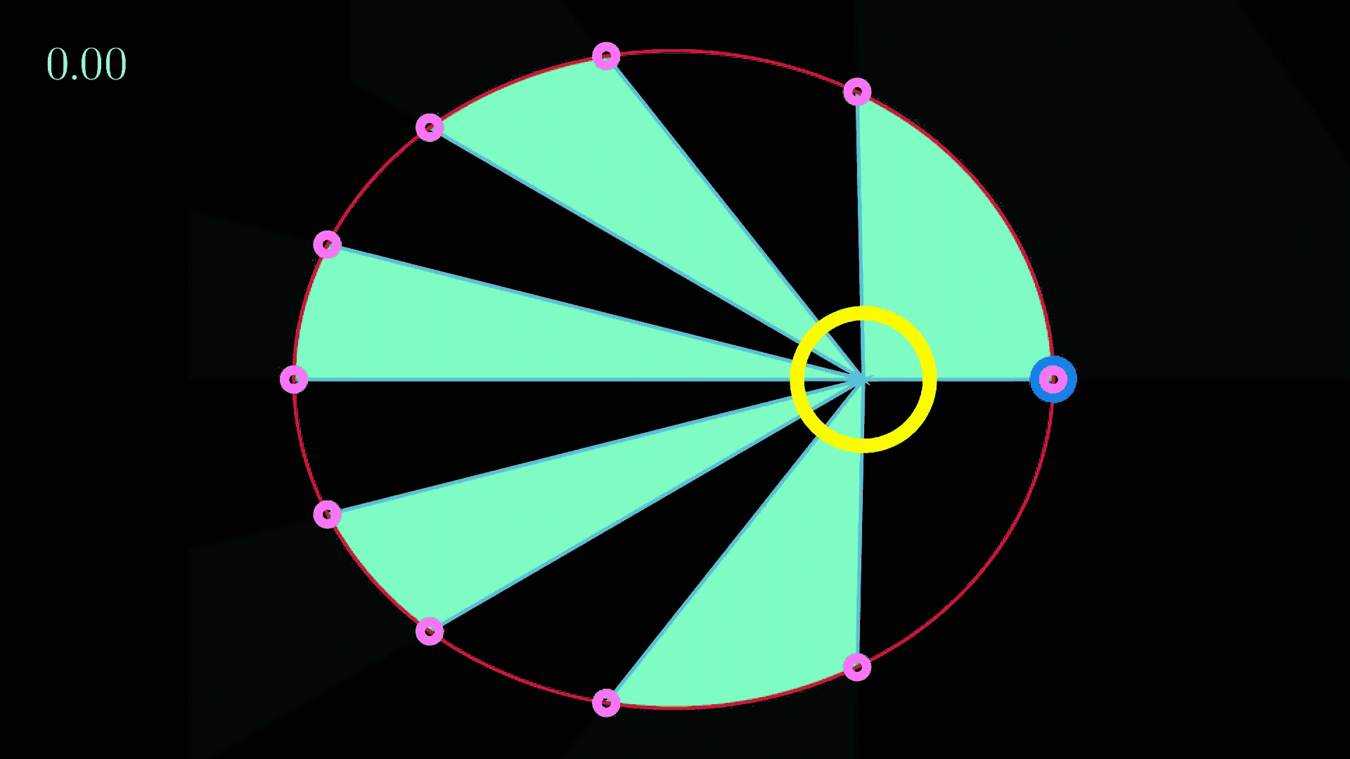 因为z将保持为0,并且我们在处理一个旋转的问题,使用柱坐标再合适不过了。清楚起见,我们仍然需要在柱坐标中定义x轴和y轴,但不会被涉及到它们的计算中。因为我们选择了柱坐标,位置被定义为