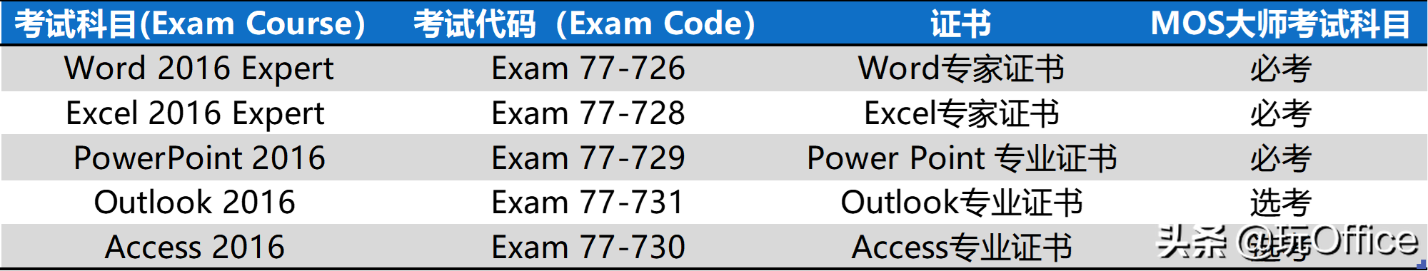 不需要参加单独的考试,只要拿到指定的几个证书之后,自动获得大师级证书(Microsoft Office Specialist Master)。