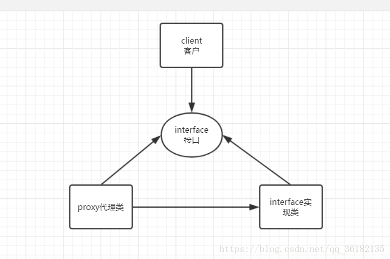 如图,client发起请求到接口,正常是通过接口实现类impl来调用方法完成请求,但是增加了代理类后,可以直接用proxy的实例来调用interface的实现类的方法,并且可以增加额外的功能。