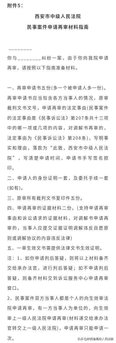 其次,如果确认属于西安中院管辖,可以按照下列材料清单一一准备。