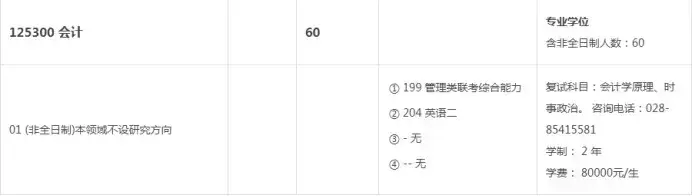 在2018年的四川大学MPAcc招生计划中,非全日制招收160人,不再招收全日制学生。2019年也是只招收非全日制。今年的招生专业目录中,会计专硕只有非全日制。