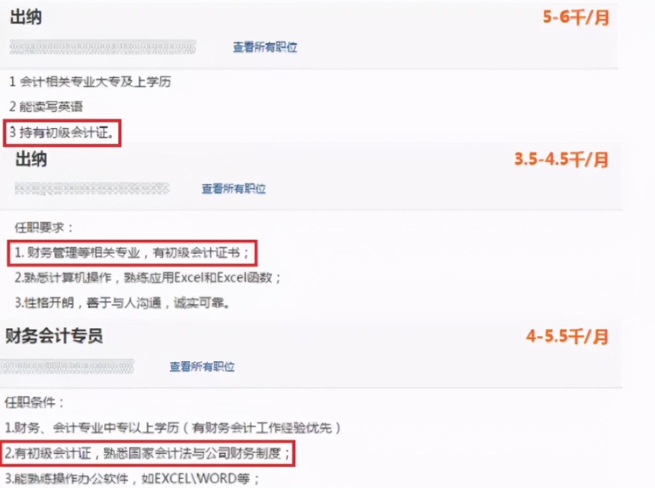 浏览各种就业招聘网站,在招聘财会人员的职位要求上,大多都会列出要求“有初级会计证书优先”,有些甚至规定必须有证书才能应聘。对于一些刚毕业进入社会的考生来说,工作经验不足,这时就需要专业证书为自己的简历添光增彩。