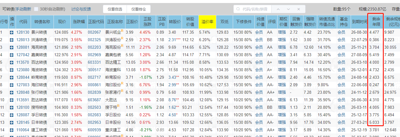 3.不要选到期年限小于1年的,因为快到到期了,可能价格还没涨上去,就被赎回了。
