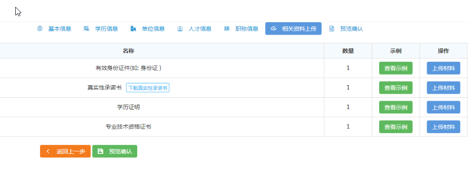 3、上传相关证明材料,包括身份证、学历证明、会计资格证书、真实性承诺书