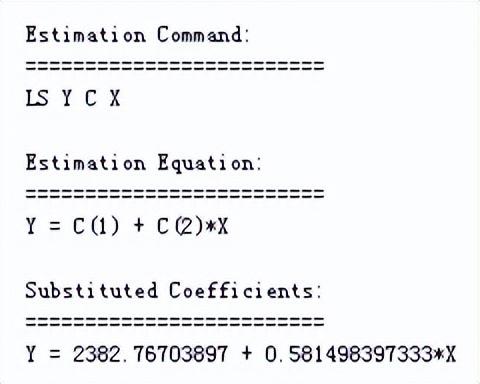 根据上面求解的样本回归方程:Y = 2382.77 + 0.5815*X,可知:
