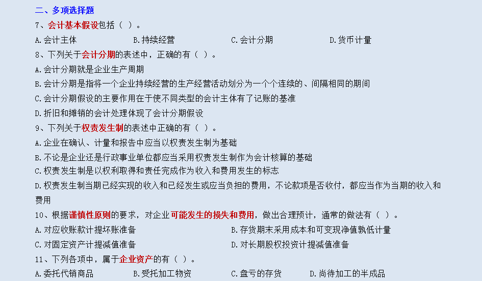 多选题的时候,强烈推荐大家使用"排除法",因为多选题和单选题不一样,你只要可以得到一半及以上的分数就算及格,所以如果可以一到两个你觉得不正确或者不符合提议的基本就是正确答案了。