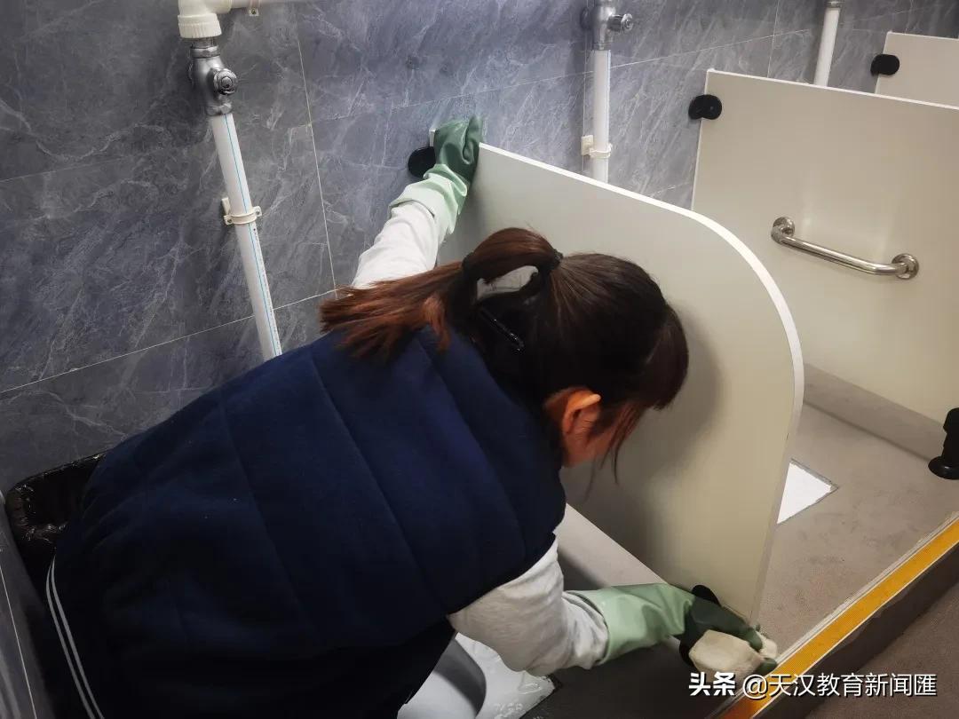 在卫生消毒环节,保育老师从84液配比到便池、洗手台的清洁都驾轻就熟。