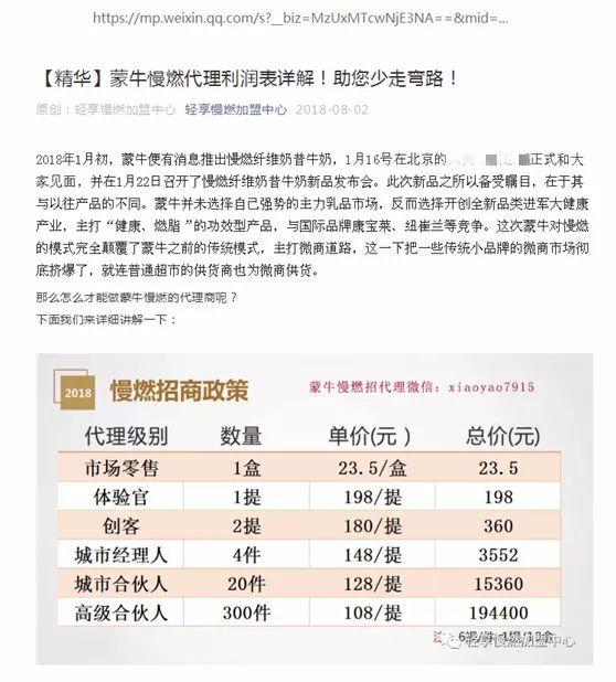 一名蒙牛慢燃前代理商发布的招商政策
