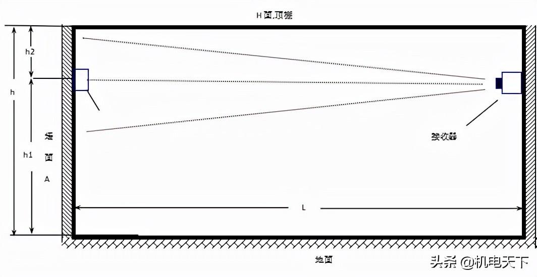 建议:当顶棚高度h>12m时,发射器宜分层安装,一般h在12至30m时,可分二层安装。