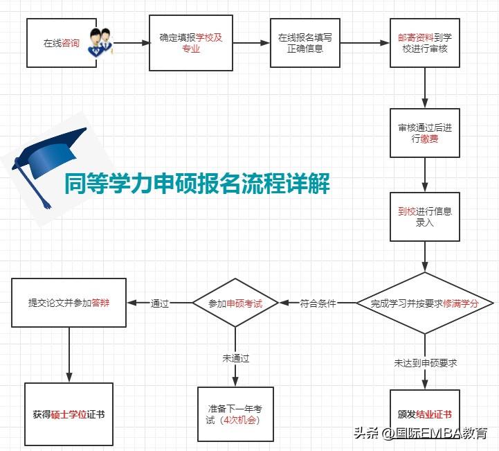 同等学力申请硕士学位分为两个阶段:研修班课程学习阶段(简称第一阶段)和撰写学位论文及答辩阶段(简称第二阶段)。