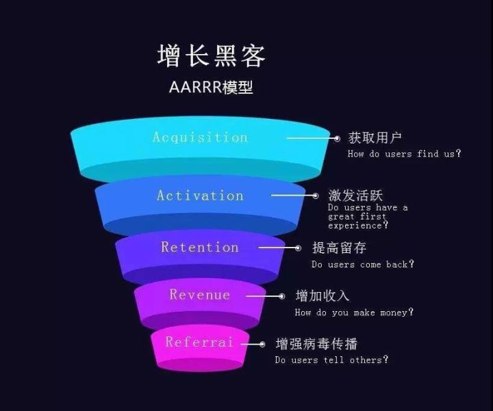 AARRR模型其实是一个漏斗,即从用户获取到激活到留存到自传播和收入是一个自上而下的漏斗。