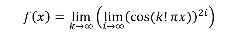 为了说明这一观点,狄利克雷就构造了一个人们以前从来没有见过的函数,就是我们现在被称之为狄利克雷函数的函数,它的函数表达式如下: