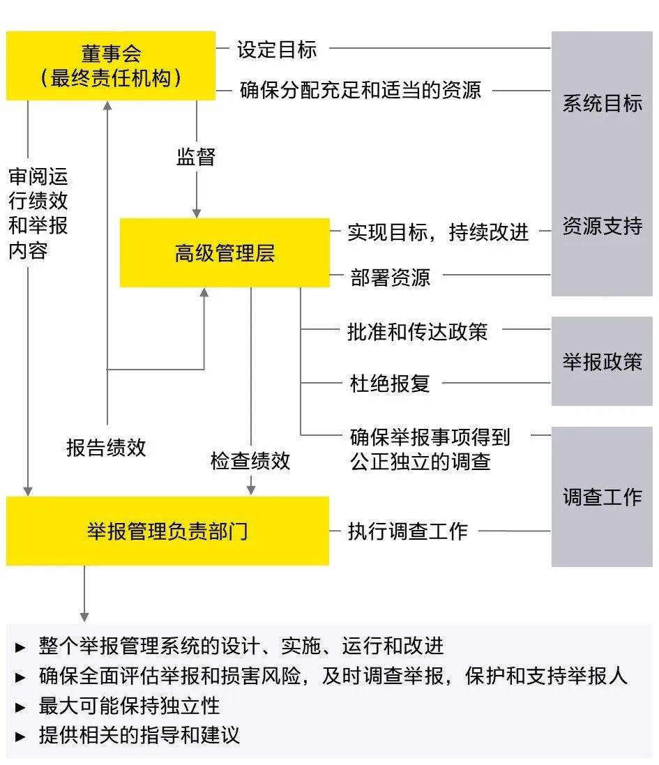 ISO 37301强调,应当有渠道可将合规顾虑提交至组织的高层管理人员或者最终责任机构。可见,举报管理系统当有企业治理层以及高管的“强参与”。
