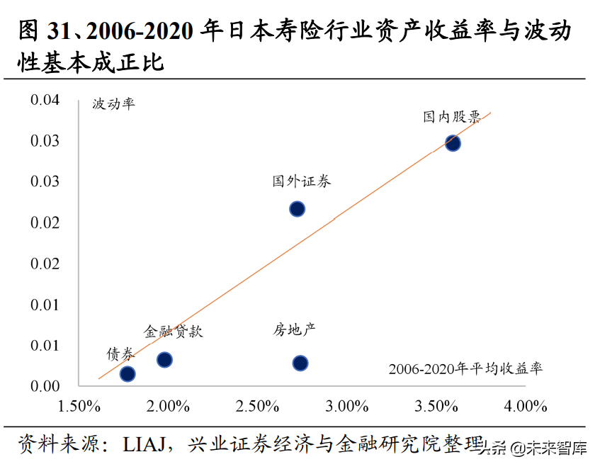优化海外资产配置成为扭转利差损以及维持稳健投资收益率的关键。从大类资产 配置结构上来看,1995 年日本寿险公司持有海外证券共计 13.9 万亿日元,这一数 字在 2020 年已经达到 106.3 万亿日元,25 年复合增长率达到 8.48%,海外资产配 置比重从 1995 年的 7.4%已扩充至 2020 年的 25.8%。海外投资显著加码的背后是 海外资产稳健的投资收益率,2006 年至 2020 年,日本海外证券投资多集中于美 国投资级企业债,平均收益率达到 2.72%,高于占总投资资产三分之一的国内债 券的平均收益率 1.77%。