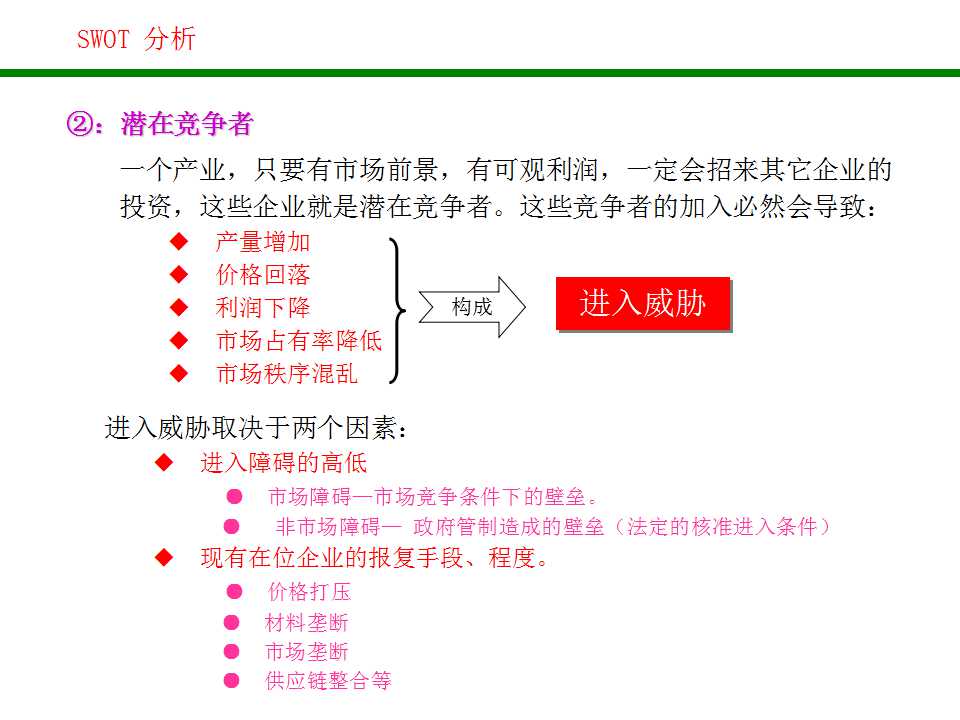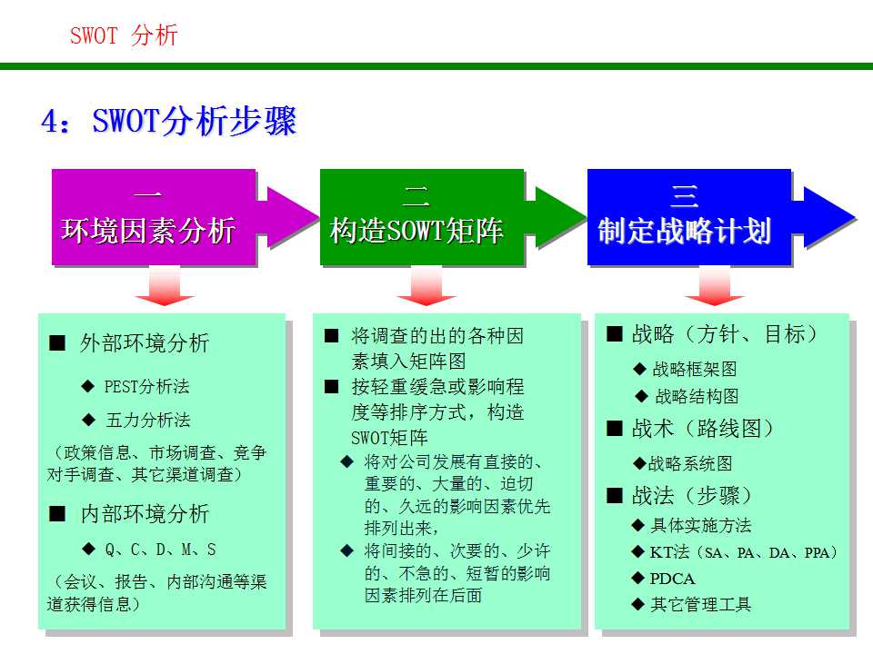 通过SWOT分析,可以帮助企业把资源和行动聚集在自己的强项和有最多机会的地方;并让企业的战略变得明朗。