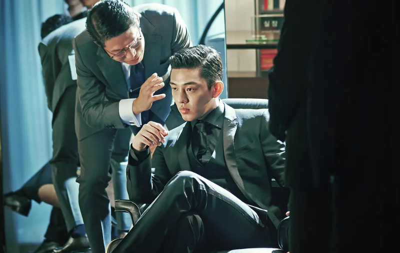 刘亚仁在片中,就是那个让人恨之入骨的富二代赵泰晤,走路看天花板,拽得二五八万似的,不过也确实有本钱拽,许多高官都得听他财阀老爸的话,他能不打横了走才怪。
