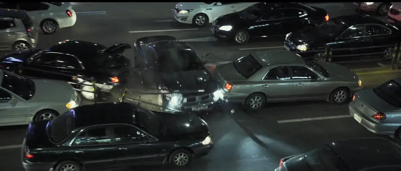 终于,徐逼停了赵的车,两人打了起来,正确地说,是徐道哲被赵泰晤狠揍,因为法律规定他不能打赵泰晤,他是警察,赵是良民,而且现场还有好多民众拿着手机在拍,路上也有监控。所以,他被打得很惨,但是他就是不放手,还把自己和赵泰晤用手铐铐在了一起,坐实了他袭警,最后时刻,同事也赶到了,制伏了赵泰晤,影片结束。