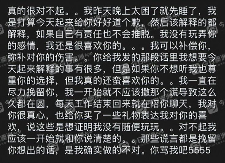次日,H发了一封道歉信给L,说明她并没有玩弄感情,并且还是“蛮喜欢” L的,并不是随便玩玩。