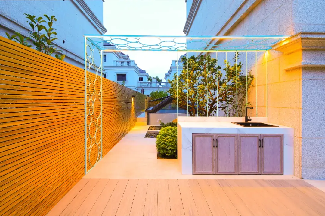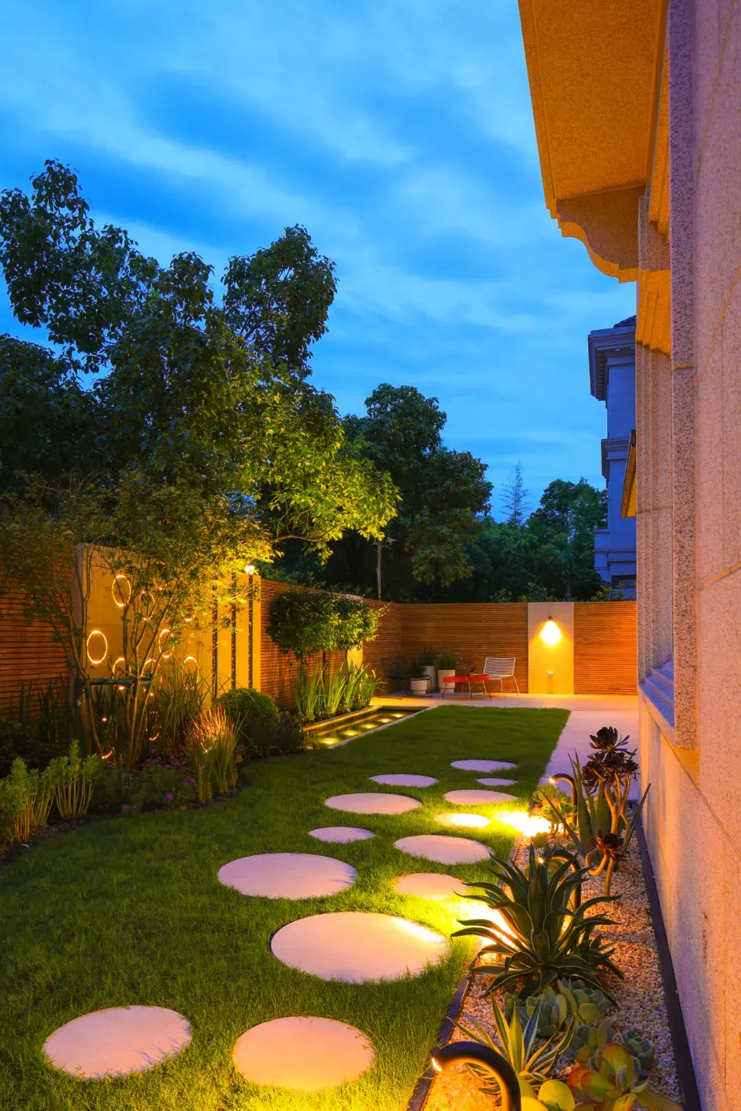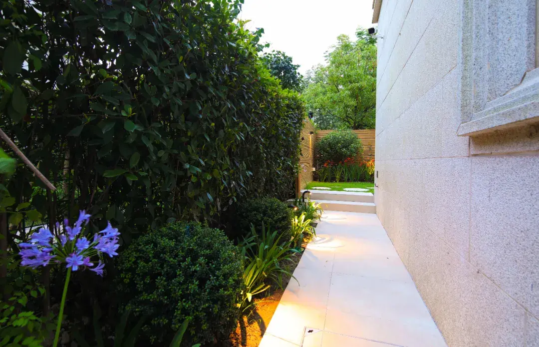 由于先天条件的限制,花园过道空间也是在设计时必须重点考虑的地方,如何通过巧妙的设计,化解视觉的限制?那最大程度让花园实现连接,然后让我们每一步有景可赏就是解决这一问题的关键所在。