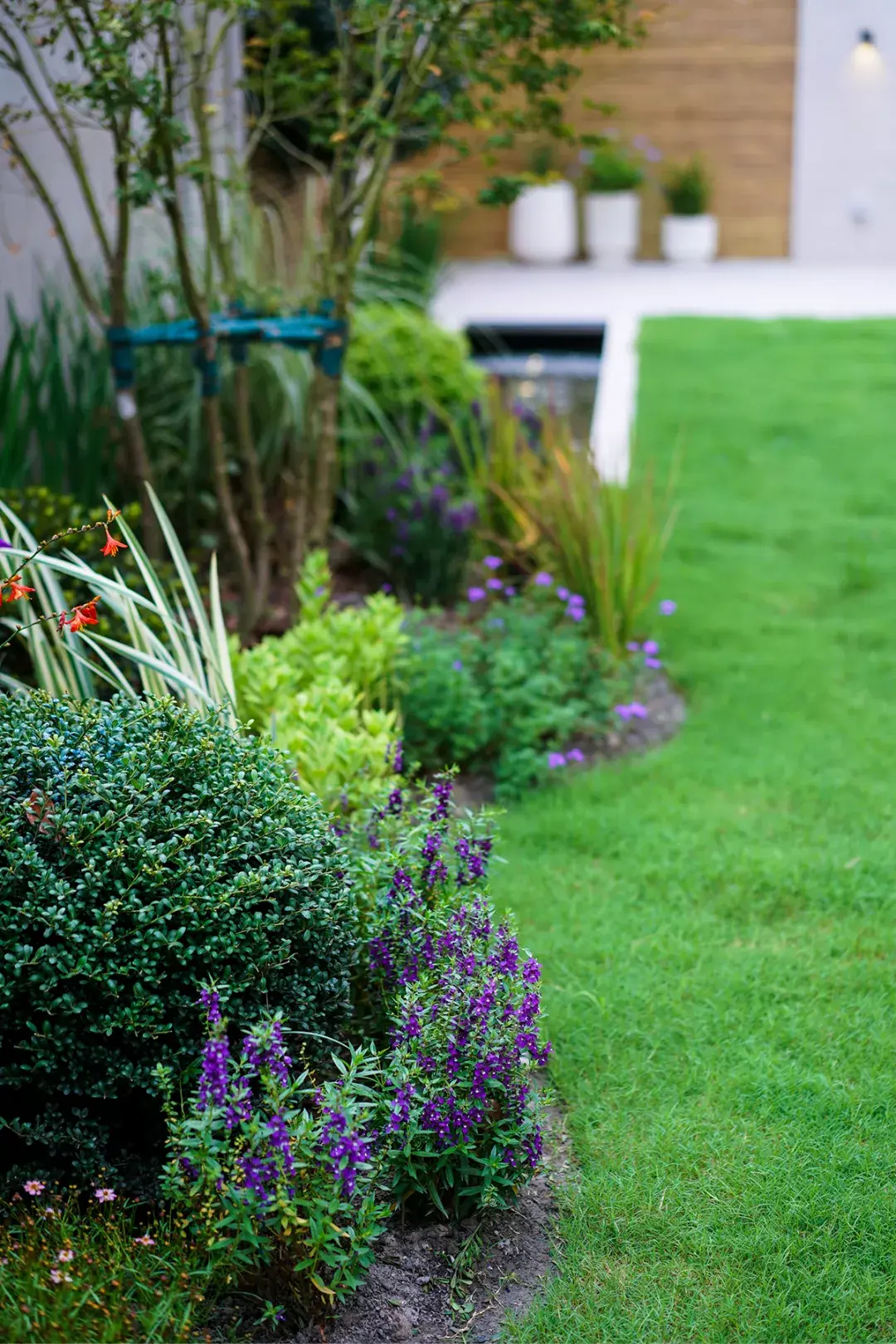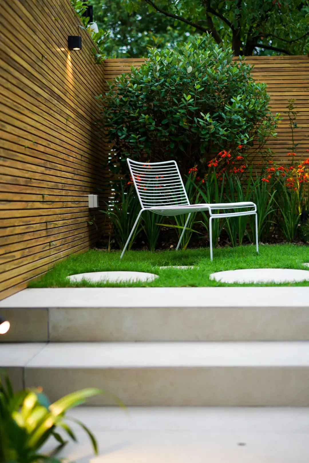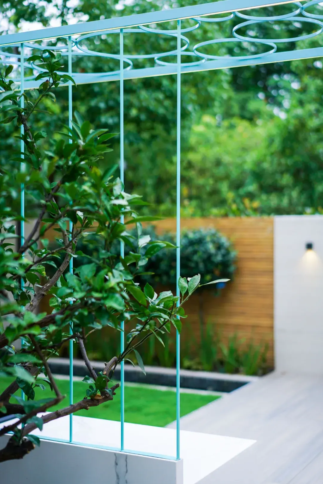 对于现代风格的花园而言,对于植物的把控就显得更为重要,设计师在这个花园的打造时充分考虑了多种植物的特性,最终通过不同植物的平衡组合,为花园带来了和谐的节奏与韵律。