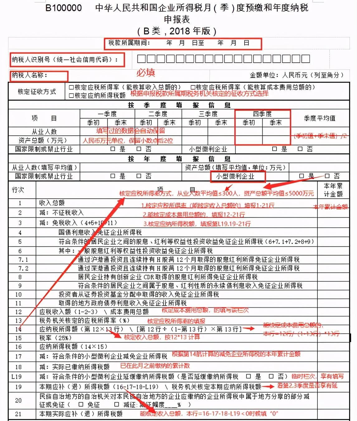填写指导——企业所得税季度纳税申报表(A类)主表
