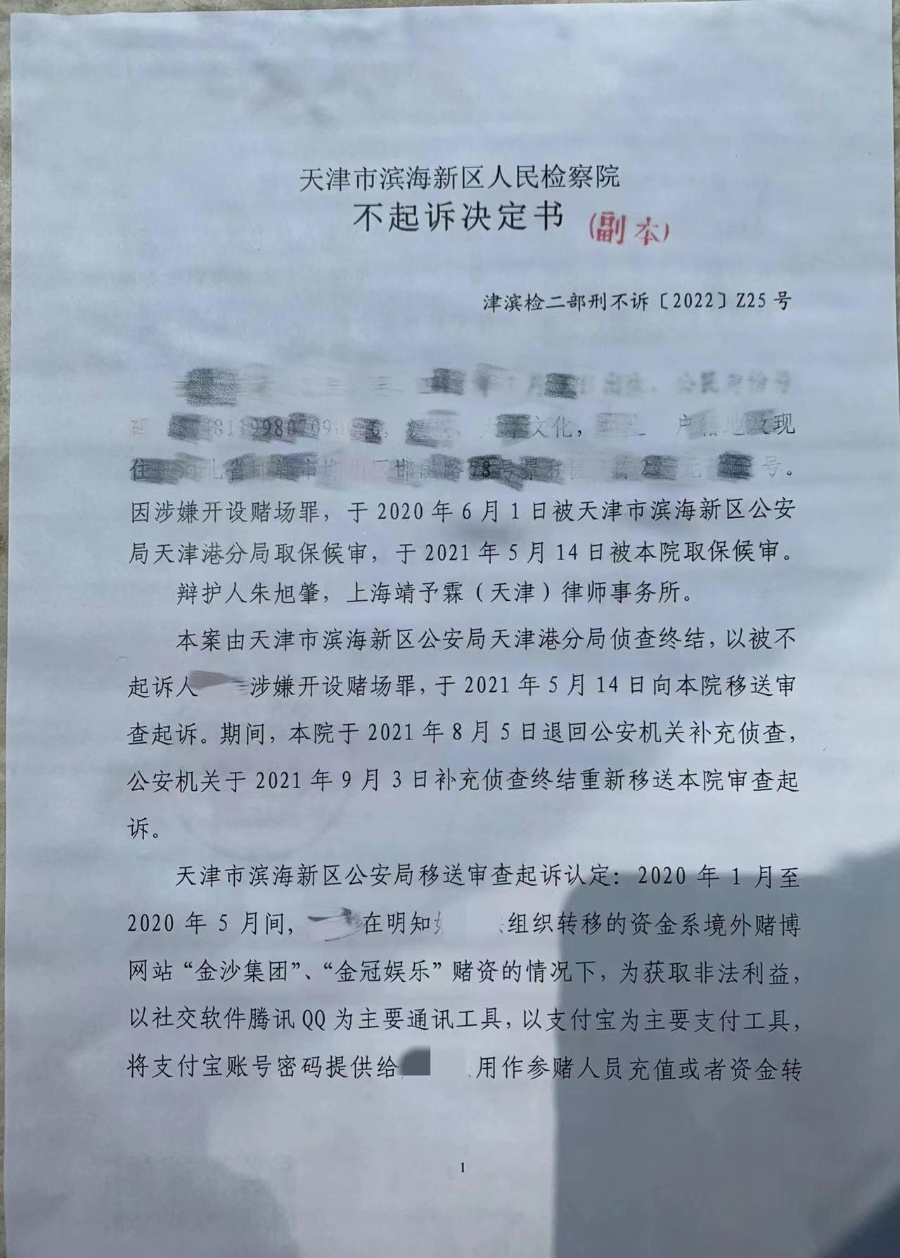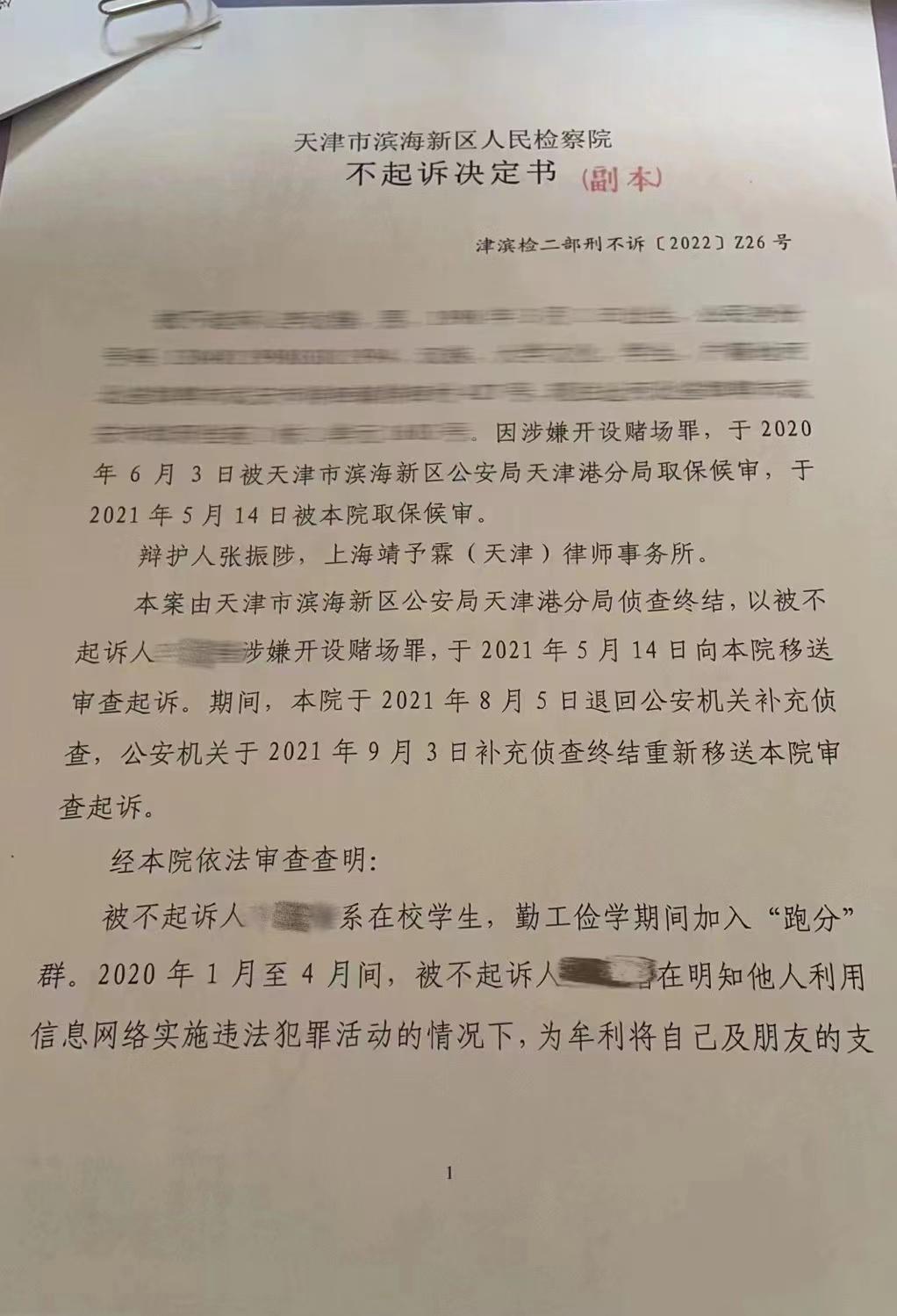 近日,我所张振陟律师、朱旭肇律师、孙宏刚律师、宋飞杨律师办理的某“跑分”团伙案件中的四名当事人获检察机关不起诉处理。其中,一人系相对不起诉,其他三人均为事实不清、证据不足不起诉。